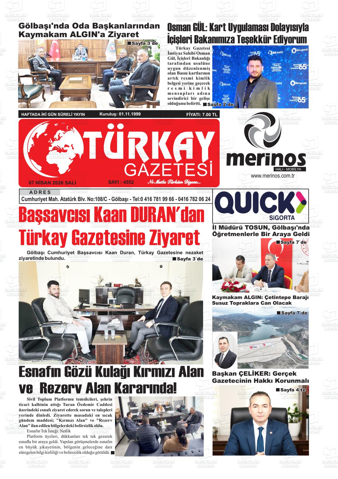 Adıyaman Yerel Gazeteleri 07 Nisan 2026, Salı Günü Manşeti