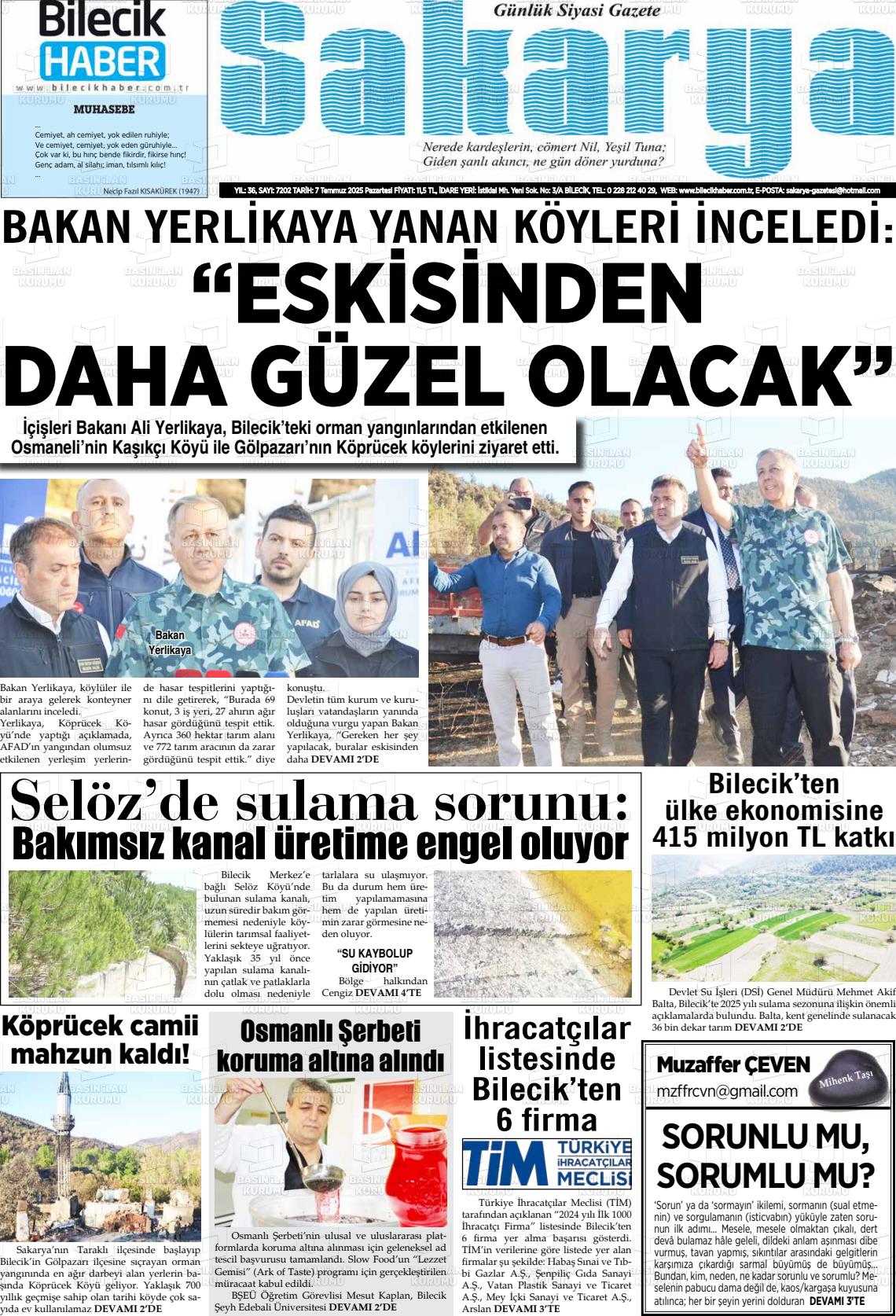 Bİlecİk Yerel Gazeteleri 09 Nisan 2026, Perşembe Günü Manşeti