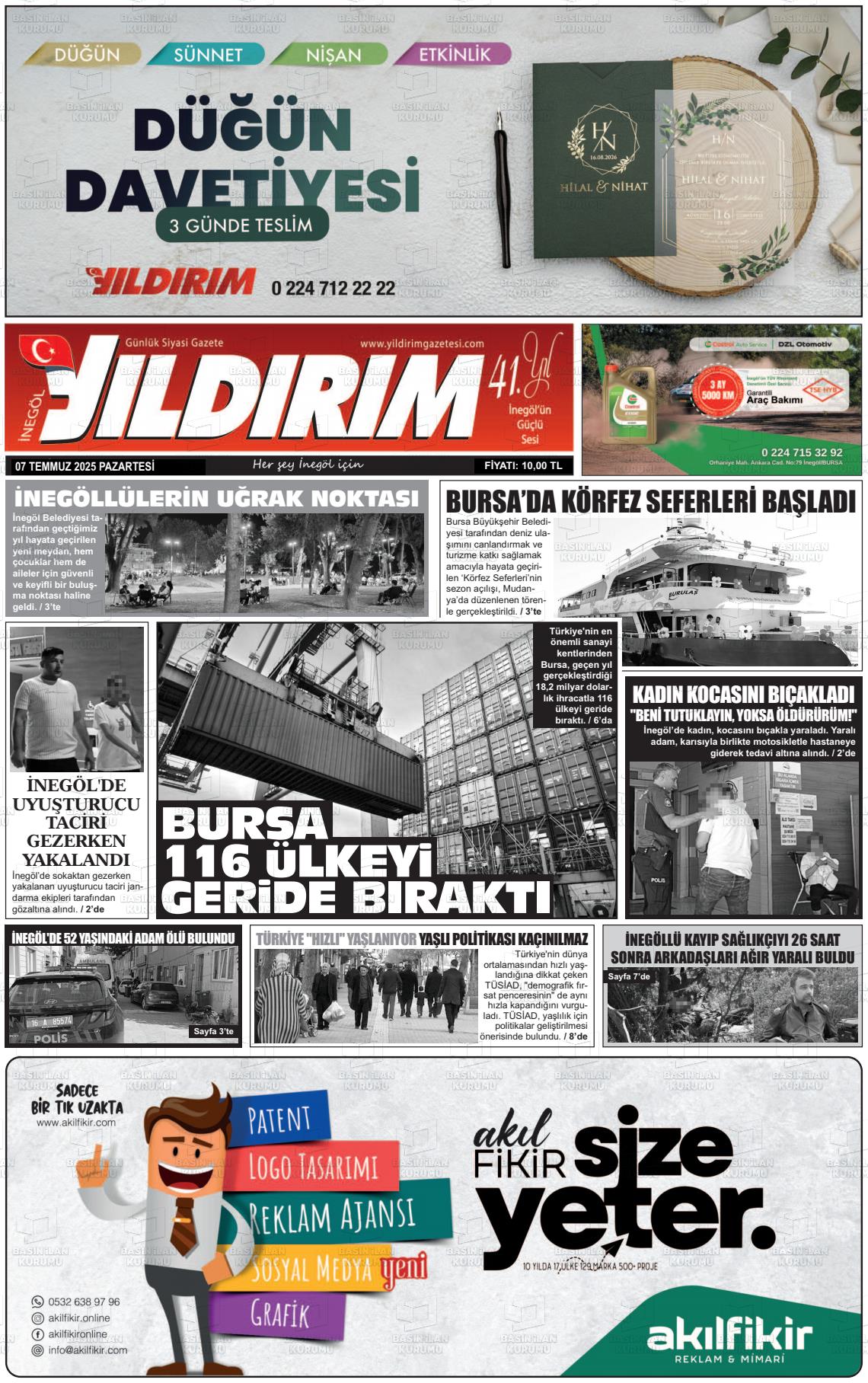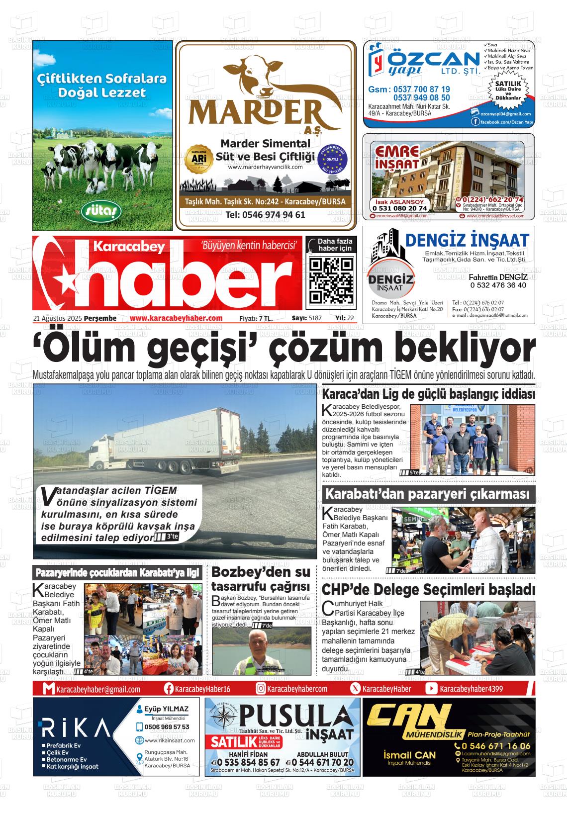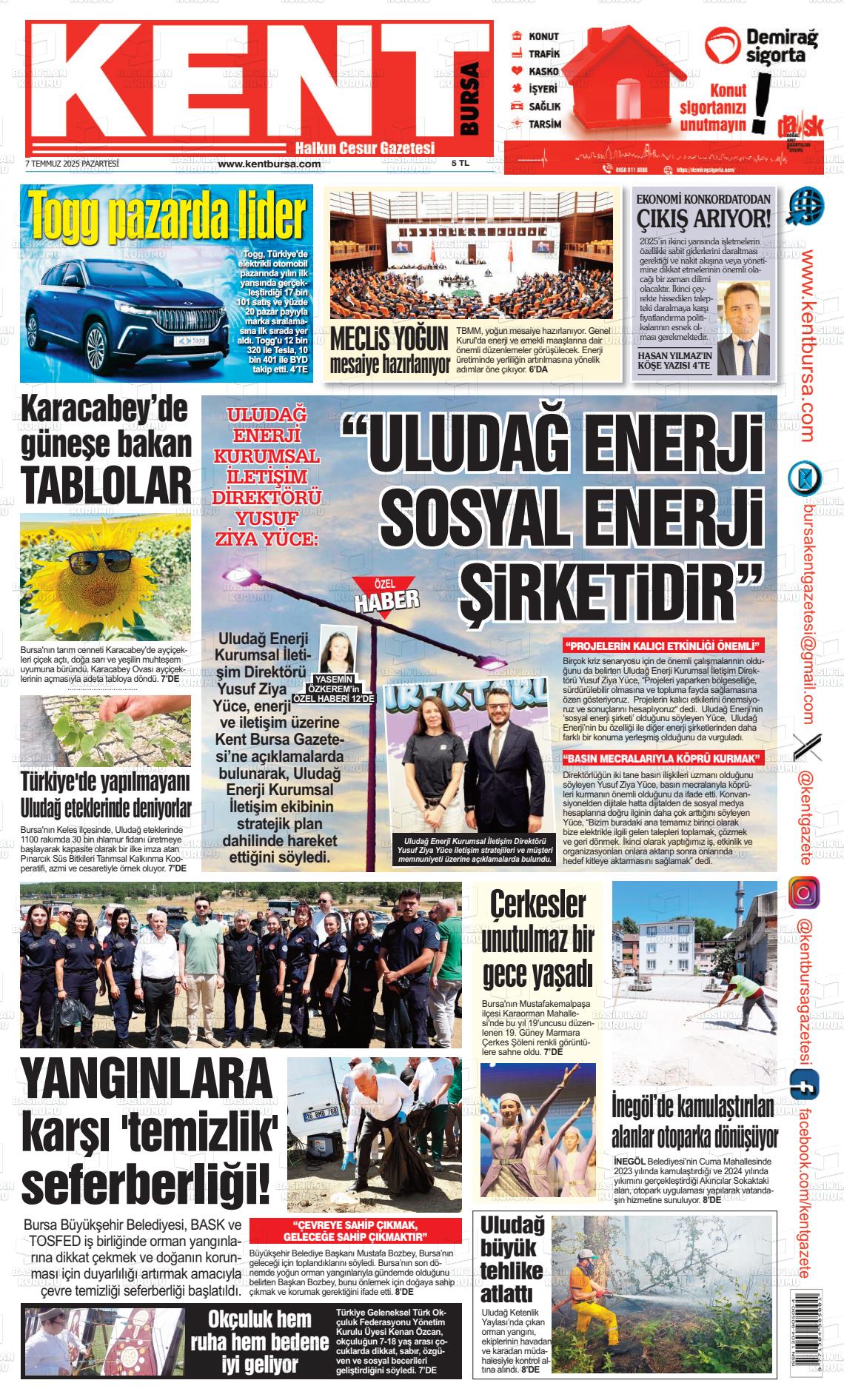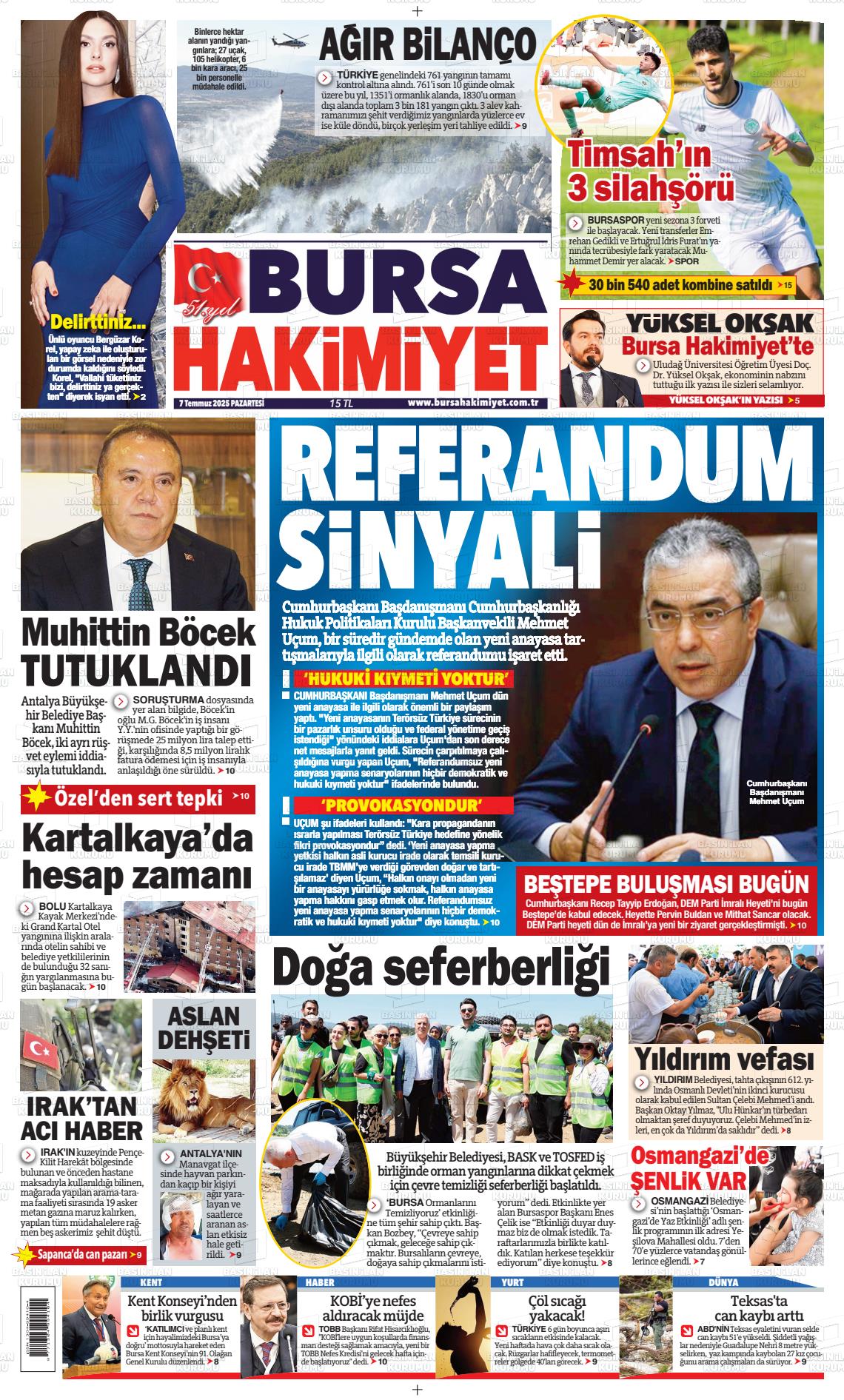 Bursa Yerel Gazeteleri 21 Şubat 2026, Cumartesi Günü Manşeti