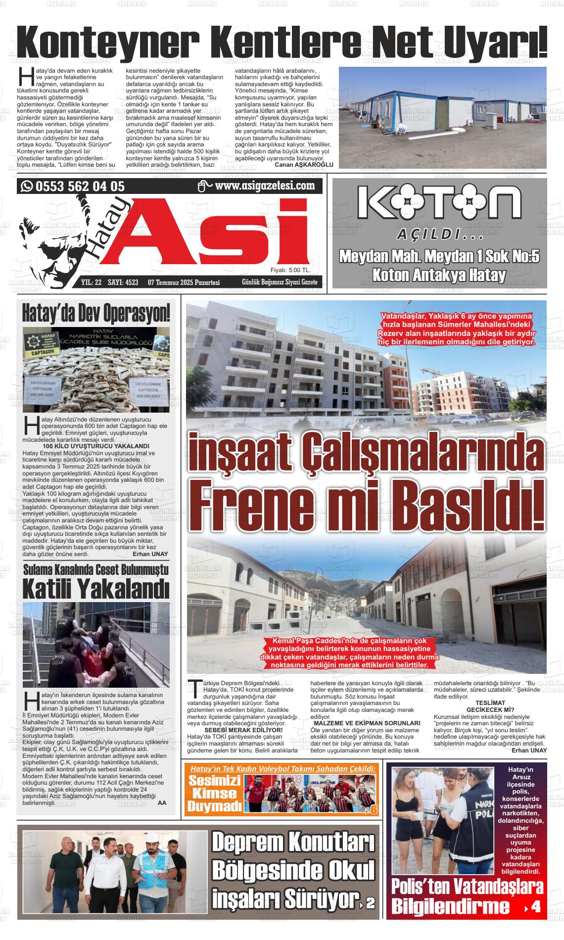 Hatay Yerel Gazeteleri 14 Ekim 2025, Salı Günü Manşeti