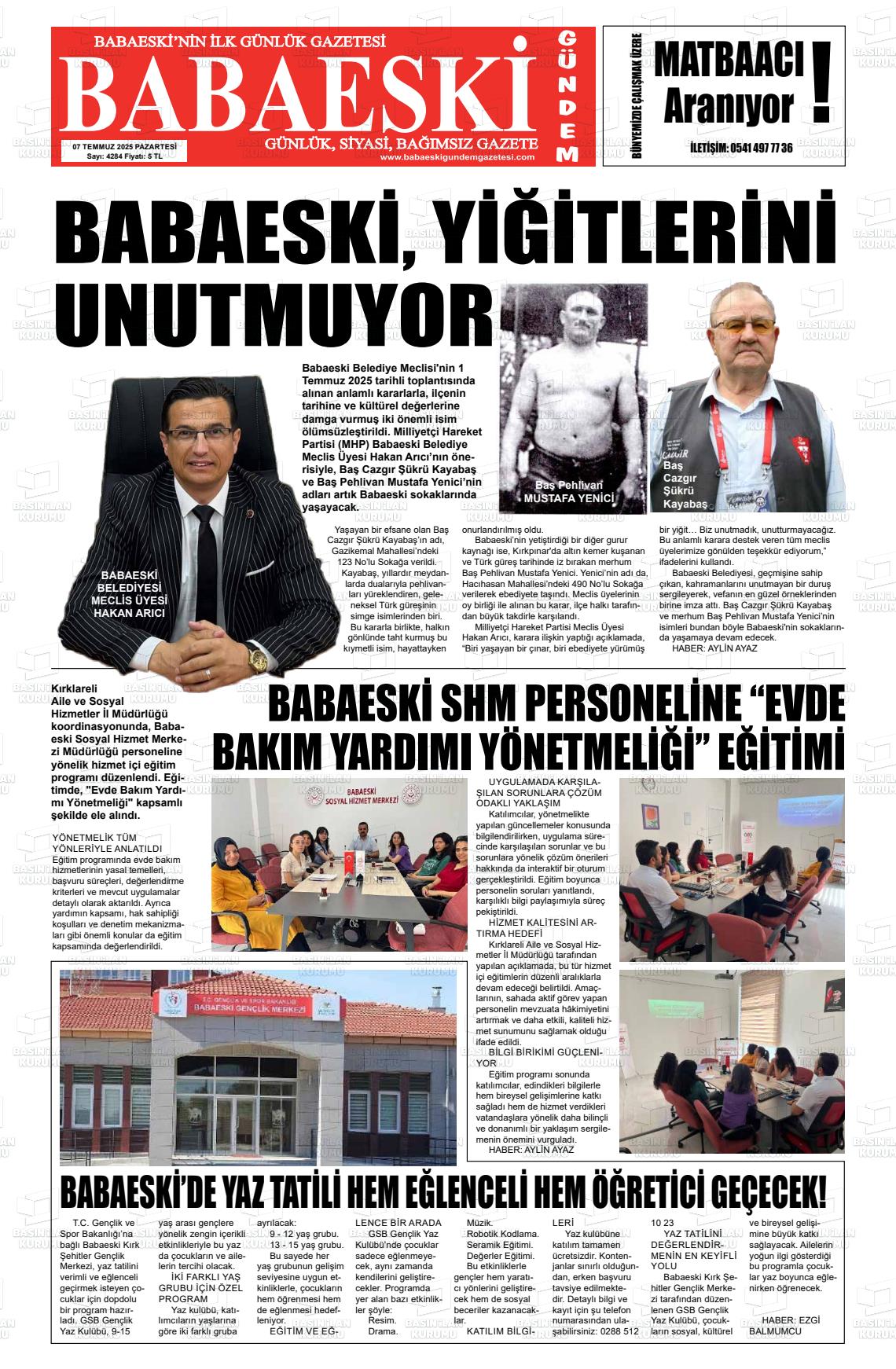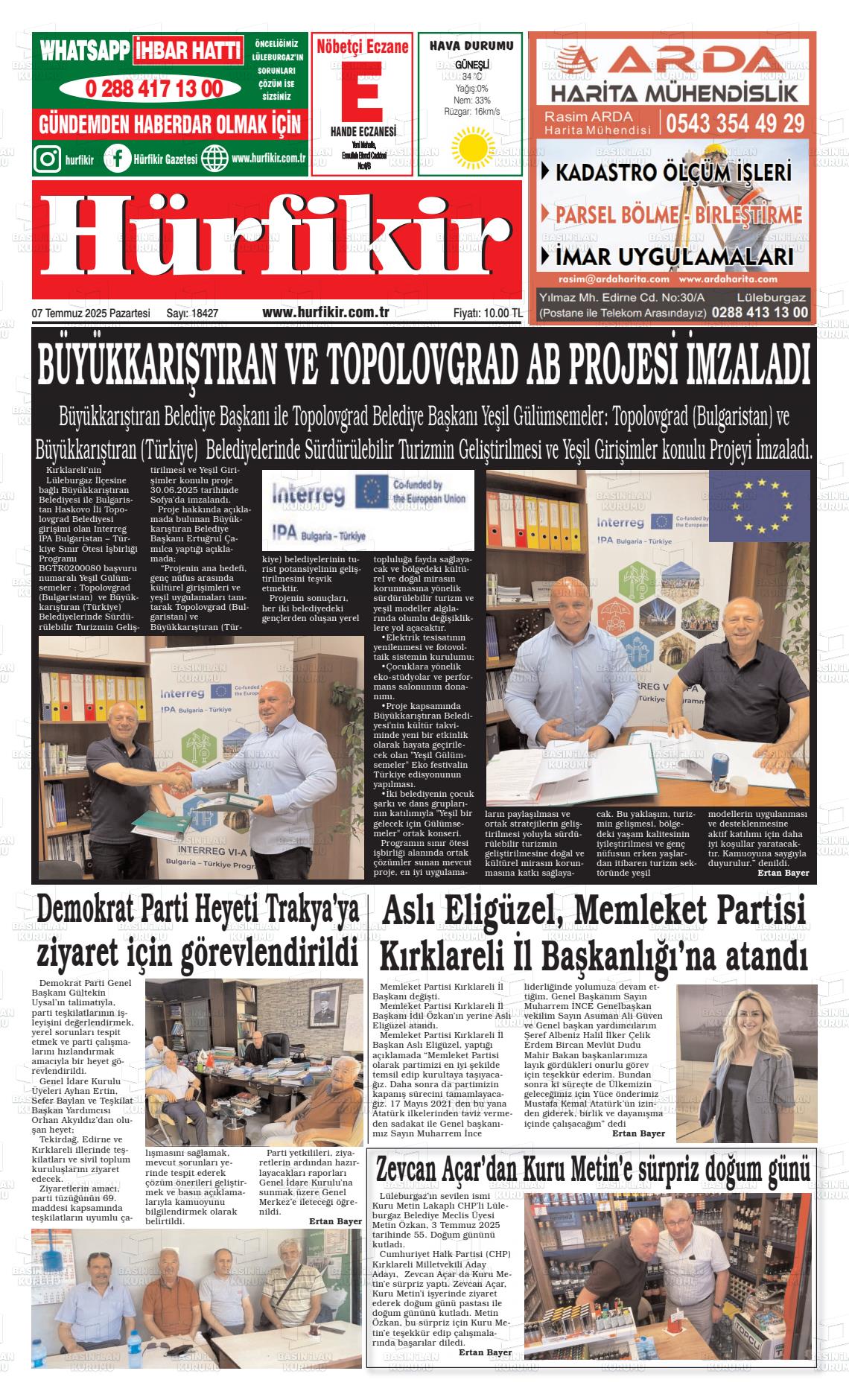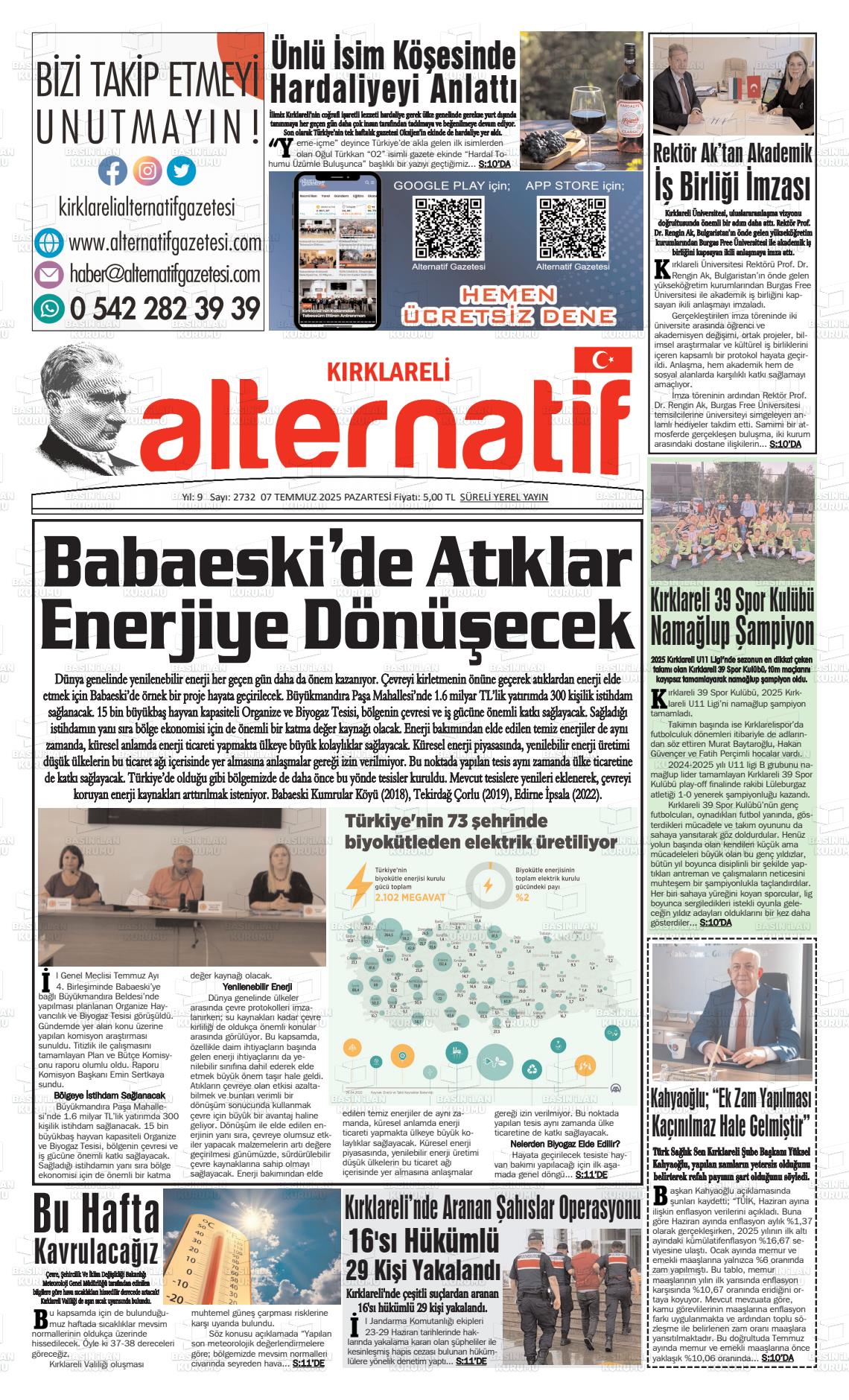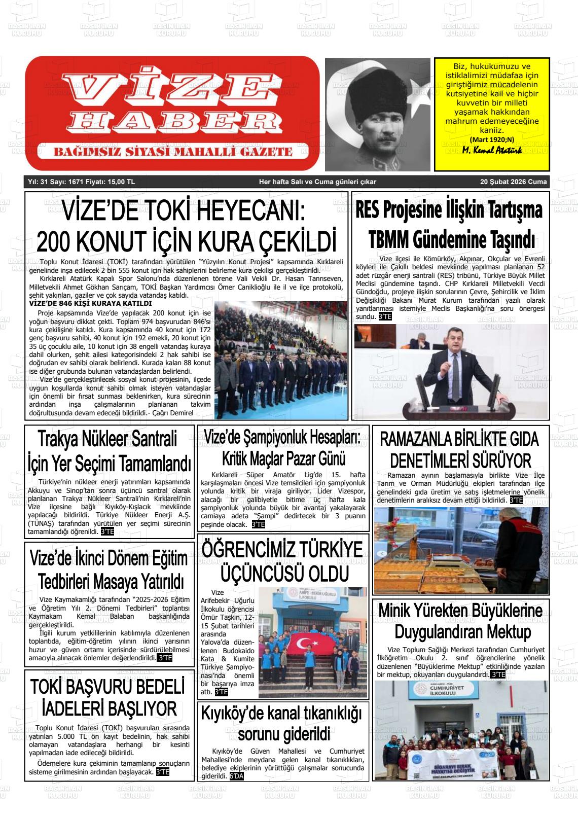 Kırklarelİ Yerel Gazeteleri 20 Şubat 2026, Cuma Günü Manşeti