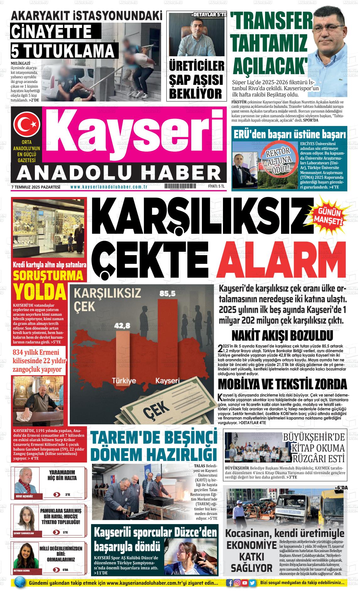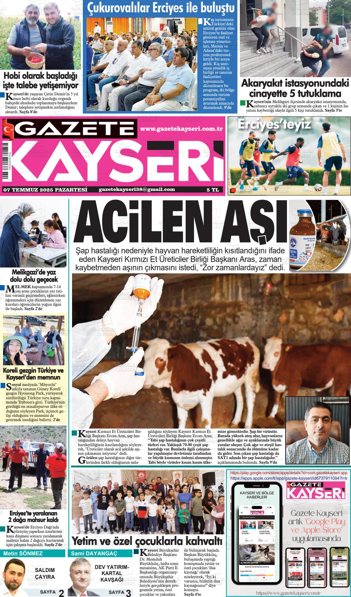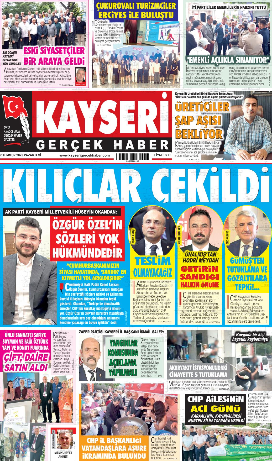 Kayserİ Yerel Gazeteleri 05 Nisan 2026, Pazar Günü Manşeti