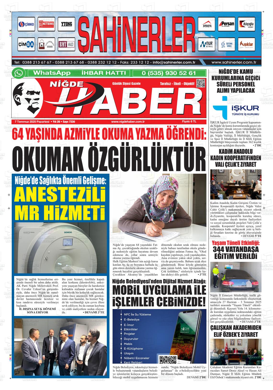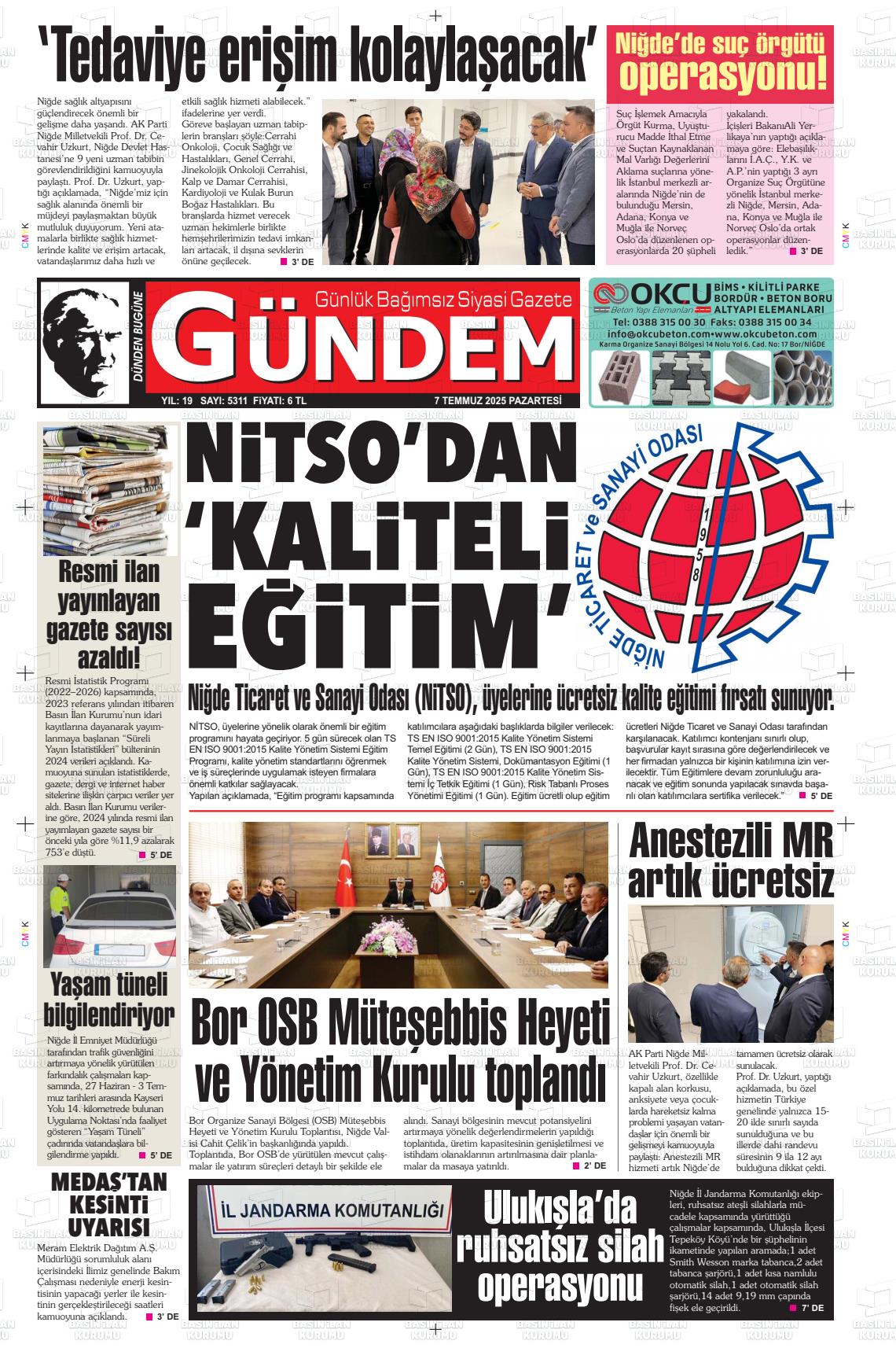 Nİğde Yerel Gazeteleri 20 Şubat 2026, Cuma Günü Manşeti