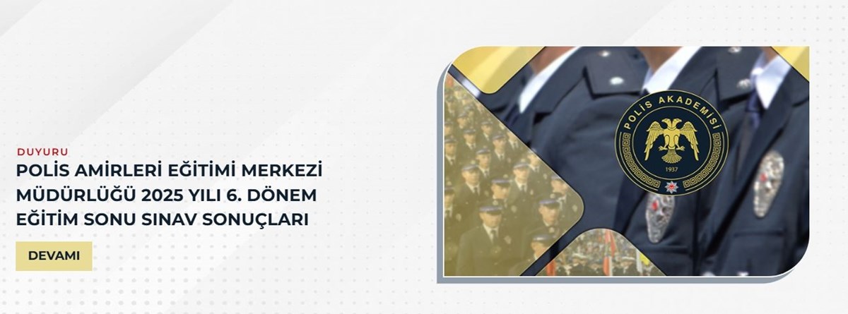 Polis Amirleri Eğitim Merkezi Müdürlüğü 6.Dönem Eğitim sonu sınav sonuçları açıklandı. Öğrenciler, e-Devlet'e bağlı "Polis Akademisi Sınav Sonucu Sorgulama" ekranı üzerinden sınav sonucunu görüntüleyebilecek.